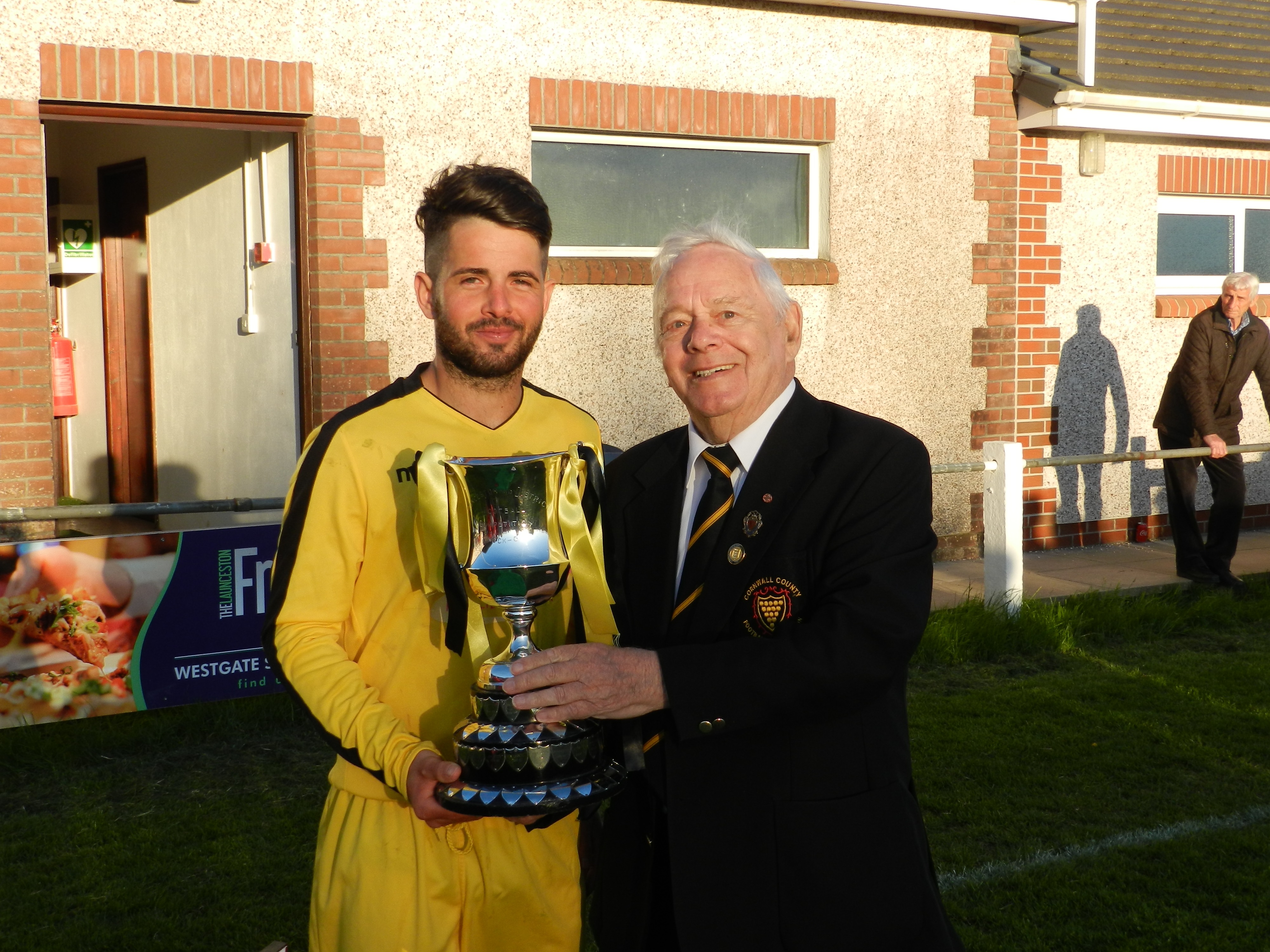 Scott Corson accepts the Cup from Brian Conyon MBE